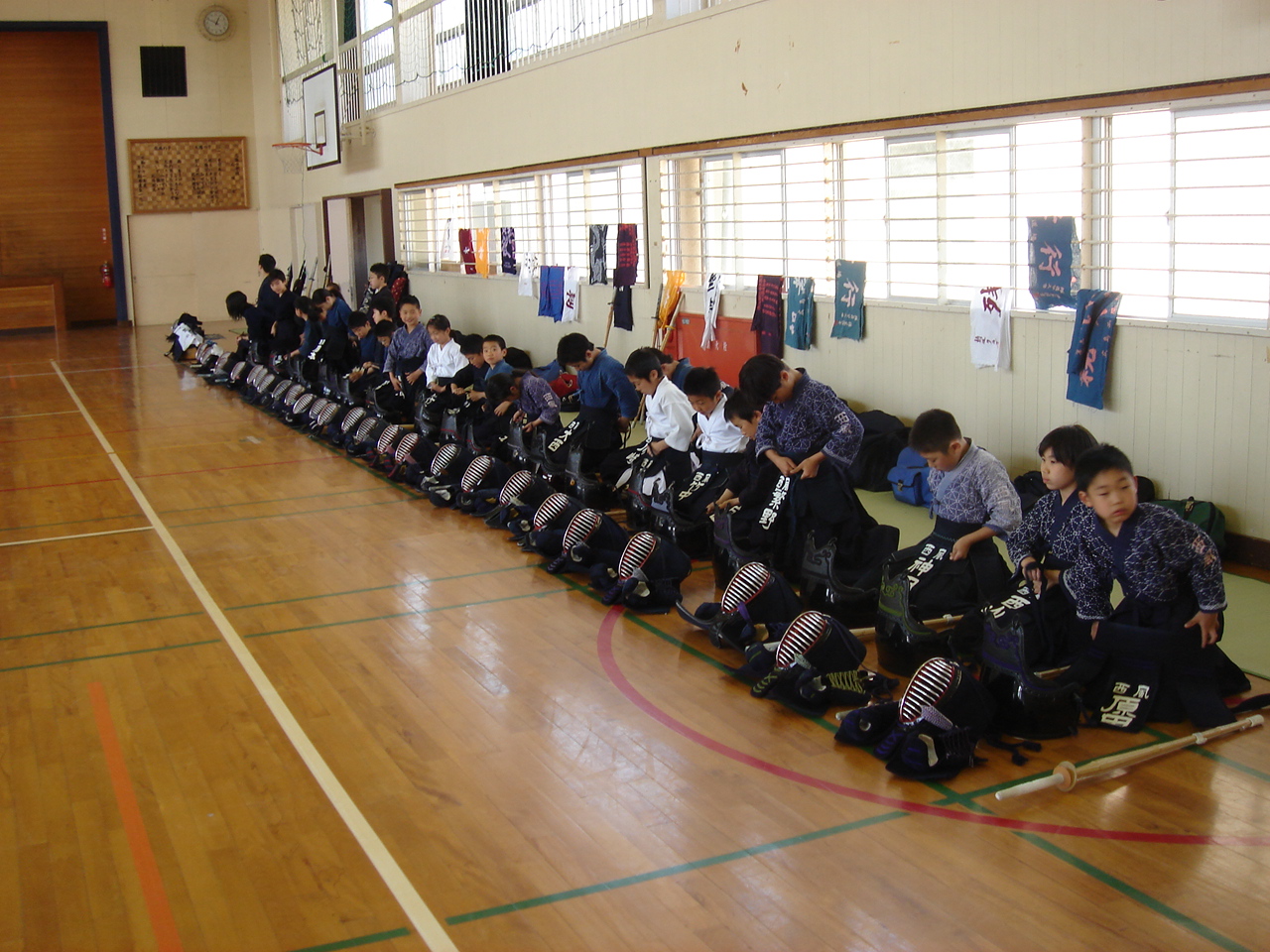 竹刀を持って素振りをはじめ、徐々に剣道着、袴を身に着けての稽古に進んでいきます。